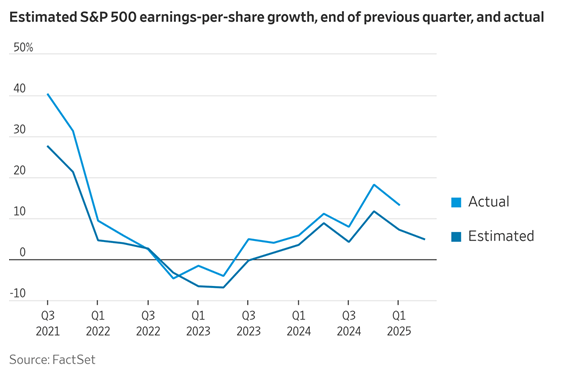 The graph below shows actual earnings compared to estimated earnings over the past 4 years. In most cases, actual earnings have outperformed estimated earnings. Subsequently, we have seen the markets provide stellar performance over this period. The one exception is the 3rd and 4th quarter of 2022. During this period, actual earnings underperformed compared to estimated earnings and we experienced a bear market at that time.