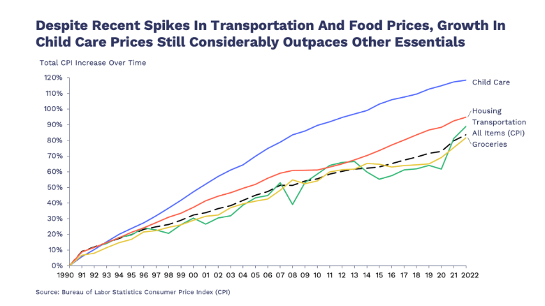 The second issue is child care costs. As the graph below shows, this expense has increased by more than all other household expenses and in many cases can prevent families from having both spouses work.