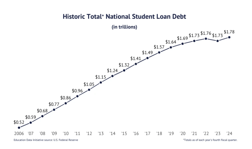 As an economist, I always strive to be balanced with my analysis so in that vein, I do need to highlight two issue that are a burden to potential buyers and what they can afford. The first is the stagger level of college debt. As the graph below shows, that amount has increased almost four fold in the past 20 years and the average debt level for recent undergrads is almost $40,000.